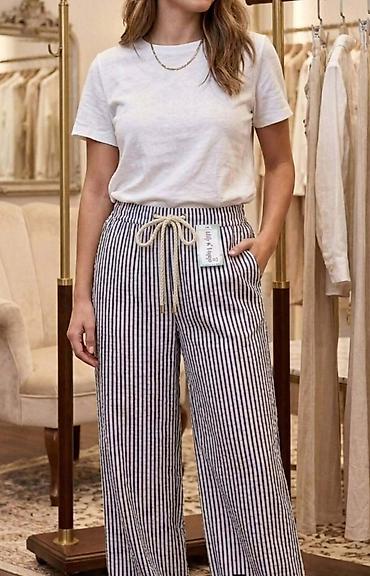Ženske široke pantalone sa preklopom i prugama 2500 din
