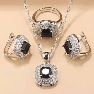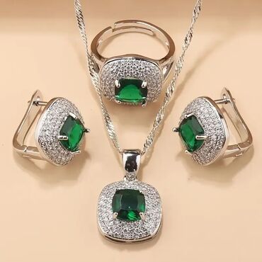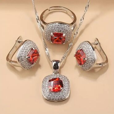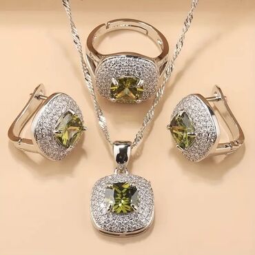 PRELEP KVALITETNI POSREBRENI SET OD ČETRI NAKITA SA KRISTALIMA SA ŽIGOM S925.PRSTEN JE PODESIV.