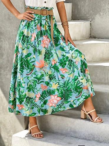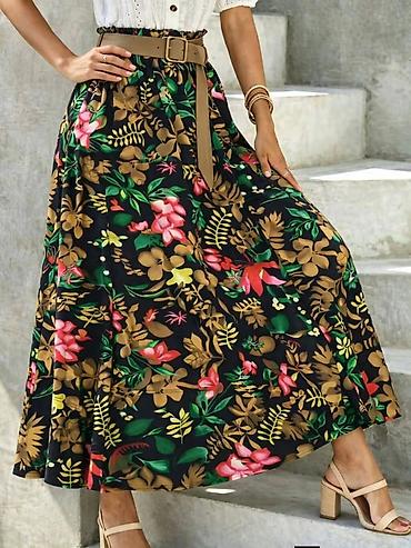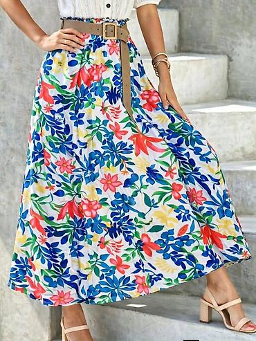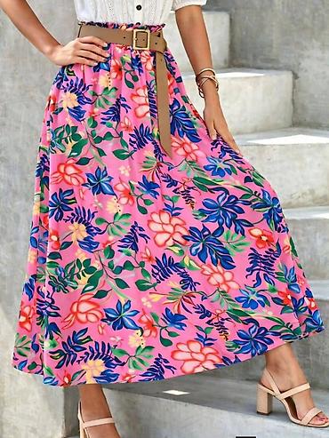 Ženska suknja s cvetnim printom ruža - Kroj: uska pencil silueta, dužina do ispod kolena (midi) - Struk: elastični pojas za udobno pristajanje - Materijal: lagan, prozračan tkan (prijatan za leto)...