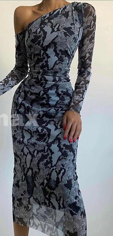 Haljina na preklop sa printom u crno-belim tačkama. - Kroj: midi dužina, struk naglašen kaišem u istom materijalu; gornji deo na preklop sa reverima. - Rukavi: kratki, blago široki. - Kopčanje: sk...