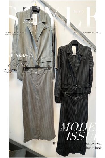 Elegantna ženska kombinacija u sivoj nijansi: - Džemper od meke trikotaže u svetlosivoj boji, ukrašen diskretnim aplikacijama/ukrasnim perlama sprijeda. - Kontrastna bela kragna na kopčanje, ukraš...