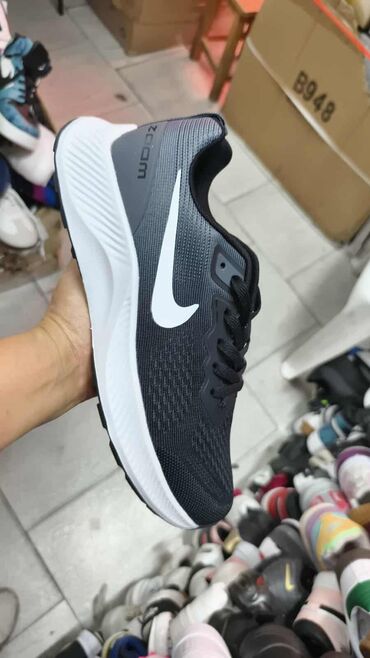 Nike Air patike – niskog profila, klasičan courts/urban stil. - Model: Nike Air (silhouette u AF1 stilu) - Boja: crna gornjište sa belim Swoosh logoom; bela međudžon i đon - Materijal gornjišta: s...