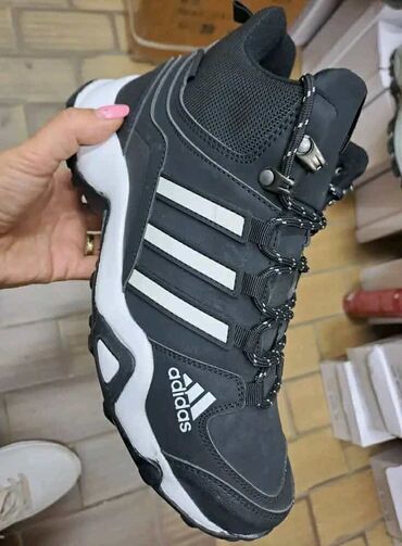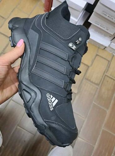 Crne Adidas patike – sportsko izdanje Velicina od 41 do 46 - Boja: potpuno crna - Dizajn: klasična silueta sa tri bočne pruge, za čist i sveden izgled - Gornjište: kombinacija glatkog i mat mater...