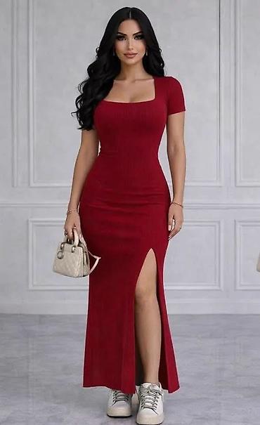 Elegantna bordo duga haljina i kombinezon - Haljina (veličina 42)