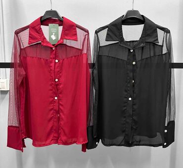 Plava prozirna bluza sa printom - Materijal: lagana, prozirna