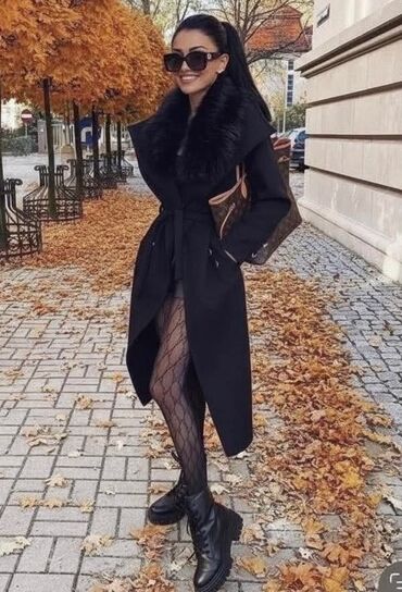 Crni ženski kaput modernog kroja sa asimetričnim prednjim zatvaranjem na rajsferšlus. Kaput ima široke reverje sa ukrasnim dugmadima i naramenice sa kopčama. Praktični bočni džepovi su takođe oprem...