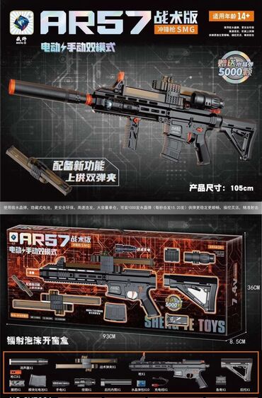 Predstavljamo AR57 taktičku SMG gel-blaster pušku – idealan izbor za ljubitelje taktičkih igara, airsoft-gel borbi i kolekcionare realističnih replika. Ovaj model kombinuje moderan dizajn, napredne funkcije i snašne performanse, što ga čini vrhunskim izborom za igrače svih nivoa (14+).