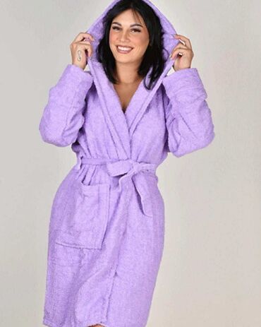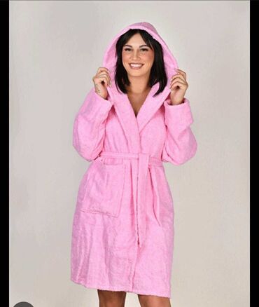 Ženski frotirni bade-mantil u jarko crvenoj boji. - Veličina: 10–12 ili XS–S - Dužina: 90 cm - Materijal: mekani, topli frotir - Kroj: kimono stil sa širokim reverima - Pojas za vezivanje u struku...