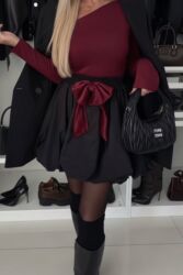 Roze suknja sa volanima na donjem delu. Model sa visokim strukom i panelnim krojem koji se širi ka dnu, daje elegantan A/mermaid efekat. Postavljena je glatkom satenskom postavom za udobno nošenje ...