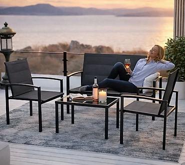 Moderna i kvalitetna baštenska garnitura (set od 4 dela) – idealna za dvorište, terasu ili balkon.