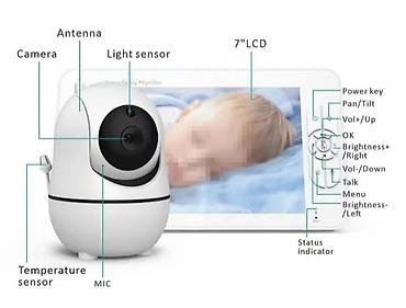 SM70PTZ 7-inčni bežični digitalni bebi monitor, dvosmerna kamera za razgovor, kućni bezbednosni uređaj, veb kamera od 2,4 GHz, podrška za noćni vid / praćenje temperature - EU utikač.