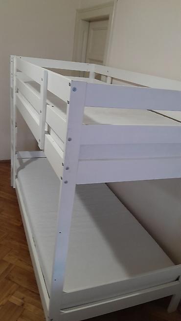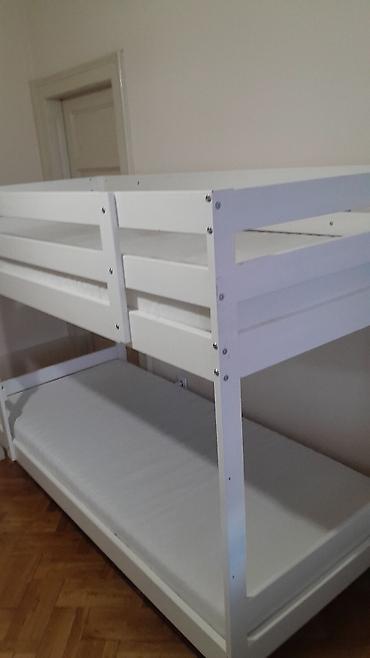 Krevet i dva dušeka po ceni. Okvir kreveta na sprat, Prodaja sa gornjim i donjim dušecima Zajedno . drvena konstrukcija u beloj boji, sa integrisanom bočnom zaštitnom ogradicom na gornjem ležaju i...