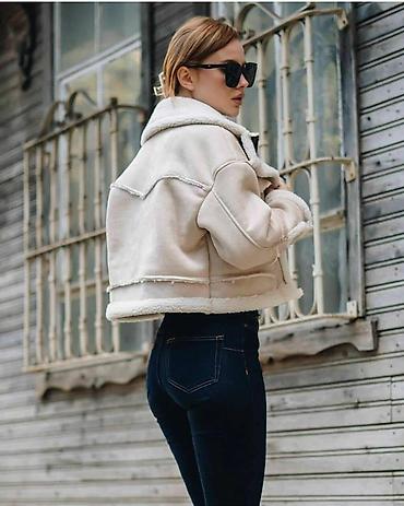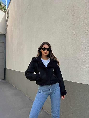 ZARA kratka aviator jakna sa veštačkim krznom (shearling stil) - Model: kratki kroj, boxy/siroka silueta inspirisana pilot jaknama - Materijal: spolja mekani veštački zimski antilop; unutrašnjost ...