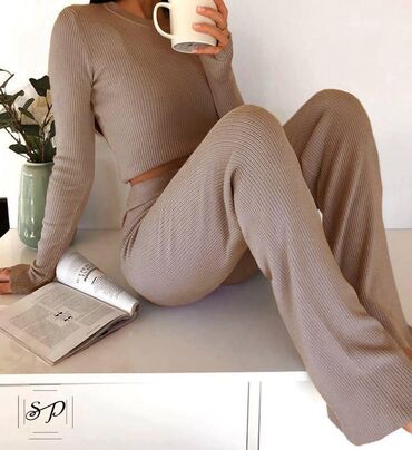 Naslov: Komplet Opis: - Dvoslojni ženski komplet u kamel nijansi - Gornji deo: uska jaknica sa rajsferšlusom, visokim okovratnikom i otvorima za palac na rukavima - Donji deo: elastične pantalone ...