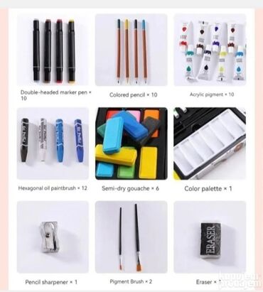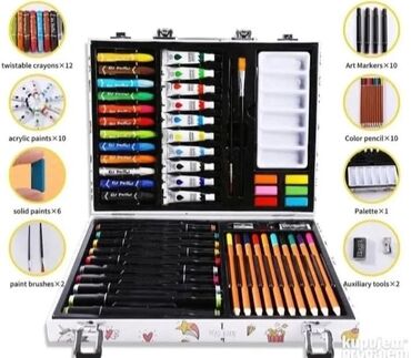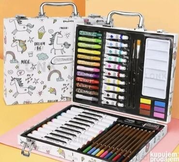 Dečiji setovi za crtanje i bojenje, spakovani u prenosivi kofer 🦄🦄🦄 Set sadrži različite vrste pribora za umetnost, uključujući: Markere Drvene bojice Uljane pastele Vodene boje u tubama Gumicu za...6 900 RSD