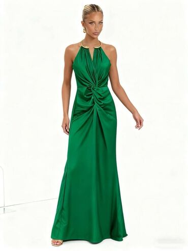 Letnja maxi haljina na bretele – CBR, veličina S - Model: duga, lepršava maxi haljina sa tankim bretelama - Kroj: gornji deo sa preklopljenim dekolteom u V i naglašenim pojasom ispod grudi; A-kroj...