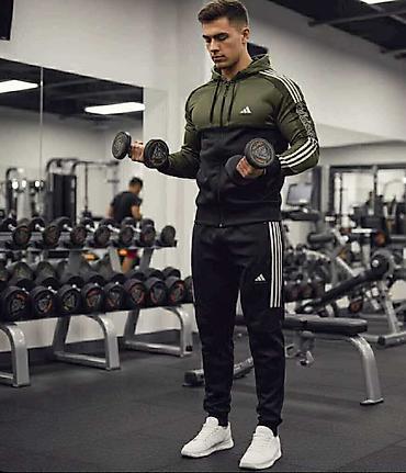 Muški sportski komplet – trenerka (gornji deo sa kapuljačom + donji deo) Od S do XXL - Model: dvoslojna dukserica na rajsferšlus sa kapuljačom i kengur džepovima + uske trenerka pantalone. - Dizajn...
