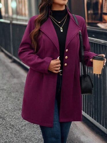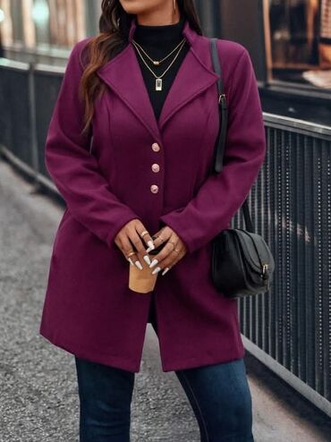 Ženski kaput, veličina 40. Sivi, teksturirani materijal. Klasičan kroj sa širokim rever kragnom, dužina ispod kukova. Diskretno postavljen iznutra za udobnost. Praktičan za hladnije dane i lako uk...