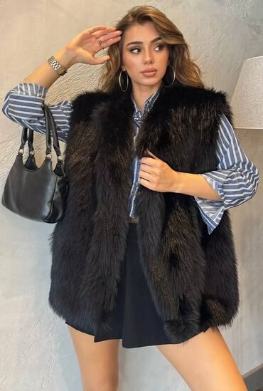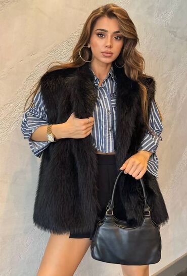 S /M M/L Prsluk od veštačkog krzna bez rukava, sa naglašenim kragnom/okovratnikom i pojasom za vezivanje u struku. Mekana, bogata tekstura krzna pruža efektnu siluetu i dodatnu toplinu. Unutrašnjos...