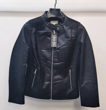 Ženska jakna, svetlo bež/šampanj ton. - Kroj: kratka, strukirana silueta sa elastičnim rebrastim pojasom i manžetnama - Kopčanje: centralni rajsferšlus pune dužine - Kragna: visoka, postavljena, s...