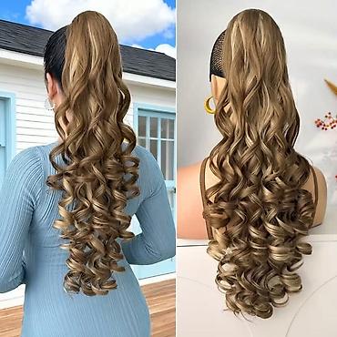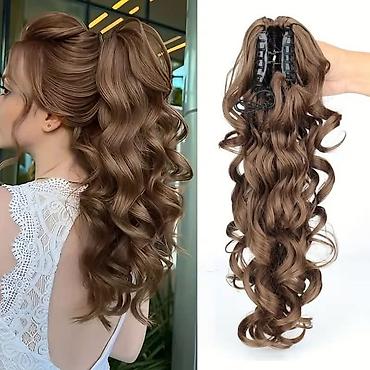 Ekstenzija rep (clip-in) – duga talasasta kosa - Tip: sintetička ekstenzija u obliku repa sa kopčom/šnalom (claw clip) za brzo pričvršćivanje. - Dužina: ekstra duga, do struka; bogat volumen i mek...
