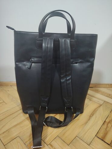 Veštačka kožaCrni kožni ruksak-torba 2 u 1