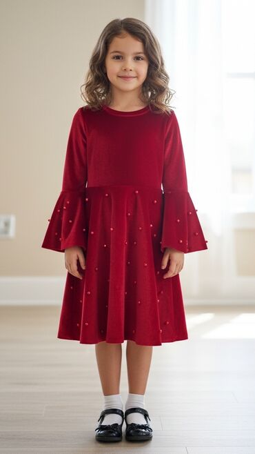 PlišDečija svečana haljina – crvena baršunasta, vel.od 3/4 do 11/12