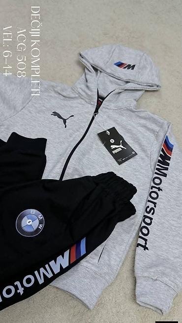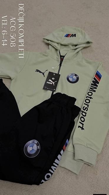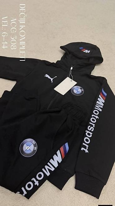 Dečiji komplet ACG 508 – BMW M Motorsport x Puma stil - Set sadrži: duksericu sa kapuljačom i rajsferšlusom + donji deo trenerke. - Dizajn: BMW okrugli amblem na grudima i nogavici, “M Motorsport”...