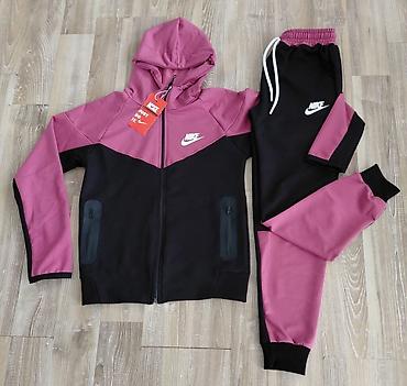 Dečiji komplet ACG (6–14) - Sportski kompleti sa kapuljačom i rajsferšlusom - Gornji deo sa V-linijskim prugama napred i Nike logotipom - Različite boje: braon, mint, ljubičasta, svetlosiva, tamno...