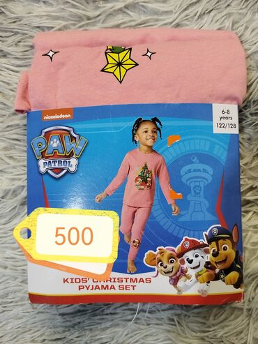 - PAW Patrol božićni set pidžame u roze boji (Nickelodeon). Pakovanje prikazuje komplet sa motivima likova Skye, Marshall i Chase. Oznaka veličine: 6–8 years / 122/128. Cena: 500.