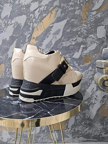 Ženske cipele br.41 italijanske marke SCENZA by Piampiani, kožne, bele boje sa debljim gumenim đonom ( dužina stopala 27,5cm,). Cipele su korišćene-polovne, neoštećene, očuvane i relativno slabo n...