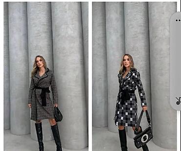 Ženski kaput kariranog dezena - Dužina do kolena, ravan kroj sa