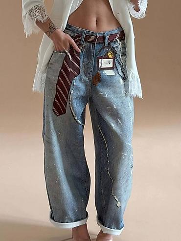 Ženske farmerke širokih nogavica sa ukrasnim nitnama - Model
