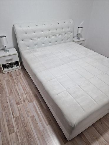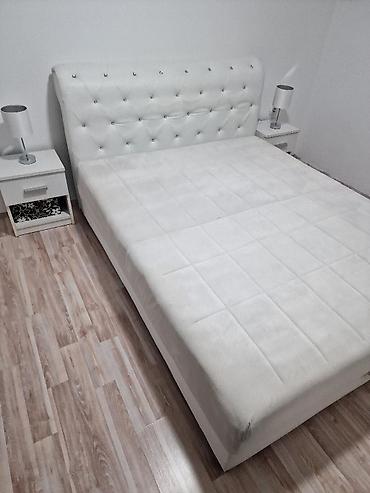 Ukreštene tapacirane krevete sa visokim, dugmićima prošivenim uzglavljem (chesterfield stil). Dizajn sa dubokim prošivima na uzglavlju i bazi, dostupno u više boja (bež, siva, tirkizna). Stabilne n...