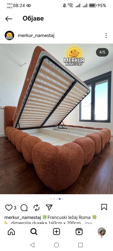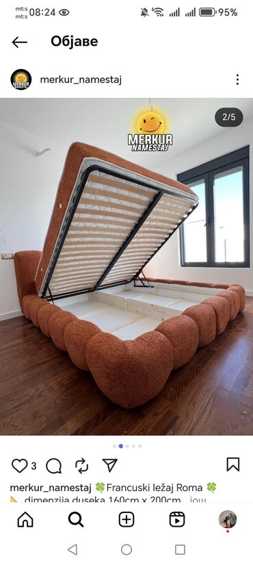 Estetski upečatljiv i praktičan ležaj koji kombinuje dizajn i veliku dodatnu ostavu.Nov ne koriscen...
