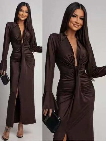Elegantna tamno braon haljina sa diskretnim svetlucavim efektom. Model