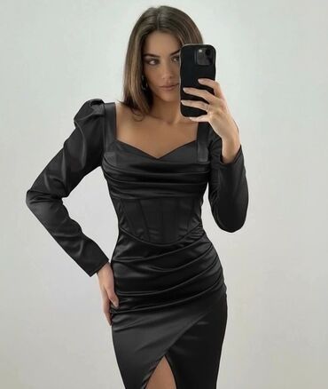 💫Elegantna crna mini haljina sa dugim rukavima i četvrtastim izrezom