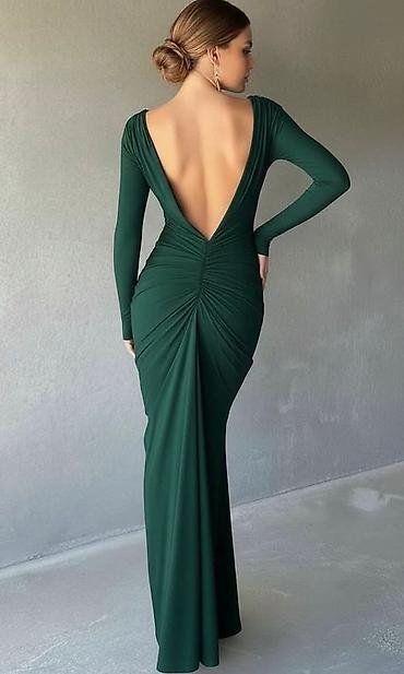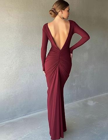 💫Elegantna svečana haljina bez bretela, duga, od satenskog materijala sa svilenkastim sjajem. Krojena da prati liniju tela, sa naborima oko struka koji vizuelno sužavaju figuru. Gornji deo ima uple...