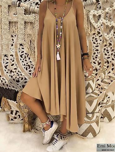 Haljina sa narukvicama, made in Italy. Univerzalna velicina za S,M,L - Boja: puder/bež. - Materijal: glatka, padajuća tkanina prijatna na dodir. - Kroj: midi dužina, blago nabrani struk sa lepršav...
