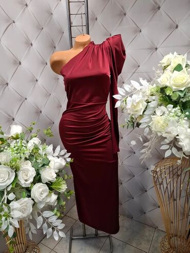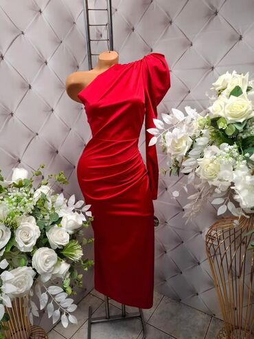 Svečana duga haljina u crvenoj boji sa korpičastim gornjim delom i visokim šlicem na nozi. vel S/M za ozbiljne kupce saljem snimak