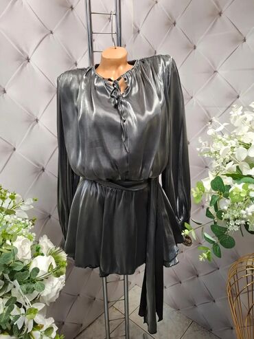 Elegantna večernja haljina – crna, duga, sa dramatičnim šlepom i visokim šlicem. - Kroj: sirena/suknja sa naborima napred, visoki otvor na butini, produženi asimetrični šlep sa strane. - Gornji de...