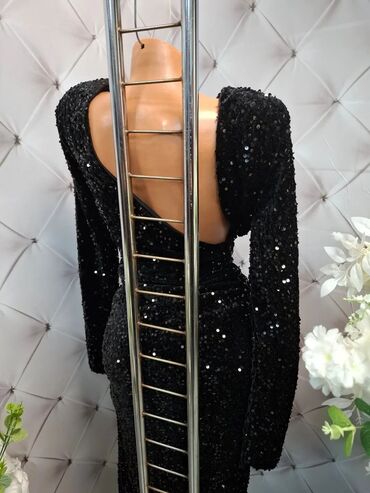 Elegantna duga crna haljina sa šljokicama D, M, L - Model: duga večernja haljina uskog kroja (sirena/silueta koja prati liniju tela) - Materijal: lagani mrežasti sloj preko podstave, bogato ukrašen...