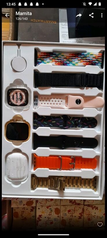 Mak odela: Pametni sat Ekran: 2,3 inča Površine sata: Višestruko praćenje zdravlja i fitnesa: puls, krvni pritisak, kiseonik u krvi, san, koraci, sagorele kalorije, pređena razdaljina Obaveštenja o pozivima i porukama Reprodukcija muzike Daljinska kontrola kamere Otpornost na vodu: IP67 slušalice Bežično poništavanje buke Kontrole na dodir Dodatne funkcije Sa sedam traka Kontrola futrole za sat.
