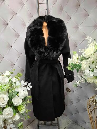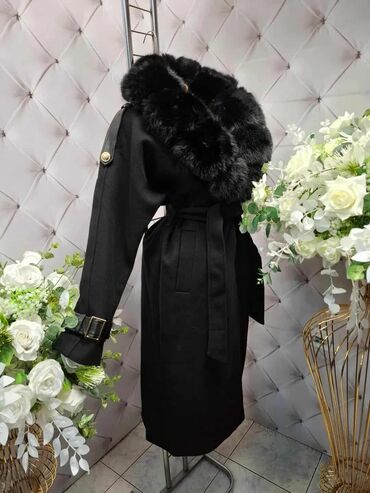 🔥Elegantan dugački kaput u crnoj boji sa raskošnim, krznenim ovratnikom. Model je ravnog kroja do ispod kolena, sa pojasom za vezivanje u struku koji naglašava siluetu. Na rukavima se nalaze dekora...