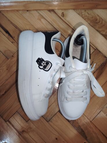 UpotrebljenоKarl Lagerfeld bele patike sa crnim detaljima