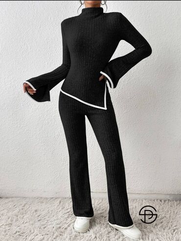 Komplet odeće – 3 dela (XS/S) - Džemper: crveni, rebrasti, uski kroj sa rol-kragnom. Brend: edc (etiketa XS). Elastičan materijal koji lepo prijanja uz telo. - Blejzer/kardigan: crn, lagan, bez ko...