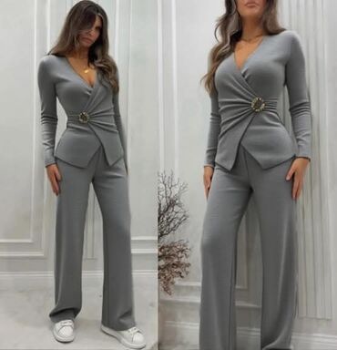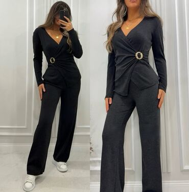 Damski komplet – rebrasti pleteni duks i suknja, crna boja. - Materijal: elastičan, rebrasti plet (prijanja uz telo, udoban za celodnevno nošenje) - Gornji deo: duži duks/bluza sa okruglim izrezom...