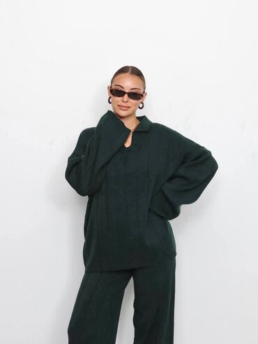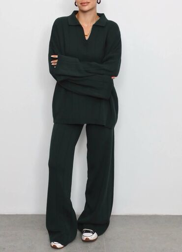 Damski komplet – rebrasti pleteni duks i suknja, crna boja. - Materijal: elastičan, rebrasti plet (prijanja uz telo, udoban za celodnevno nošenje) - Gornji deo: duži duks/bluza sa okruglim izrezom...