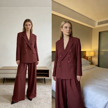 Elegantno žensko odelo – sako i pantalone Veličina S, M, L - Model: dvoredni sako sa strukiranim krojem i ravne cigareta pantalone visokog struka - Detalji: metalni dekorativni dugmići sprijeda i n...