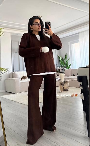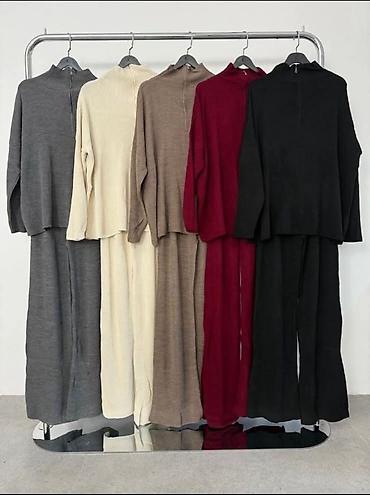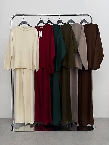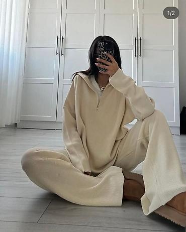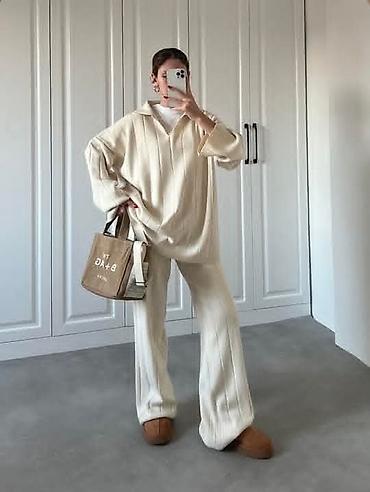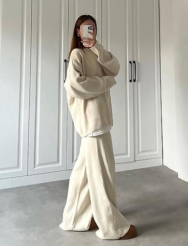 Ženski komplet – bluzica i pantalone od lagane, rebraste tkanine - Dvodijelni komplet sa širokom, komotnom bluzom kratkih rukava i ravnim, širokim pantalonama. - Materijal: prijatna, lagana, blago...